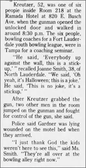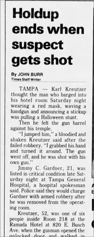 **November 1, 1987** — [Holdup ends when suspect gets shot](https://www.newspapers.com/article/tampa-bay-times-jimmie-gardner-arrested/135503465/) — Tampa Bay Times